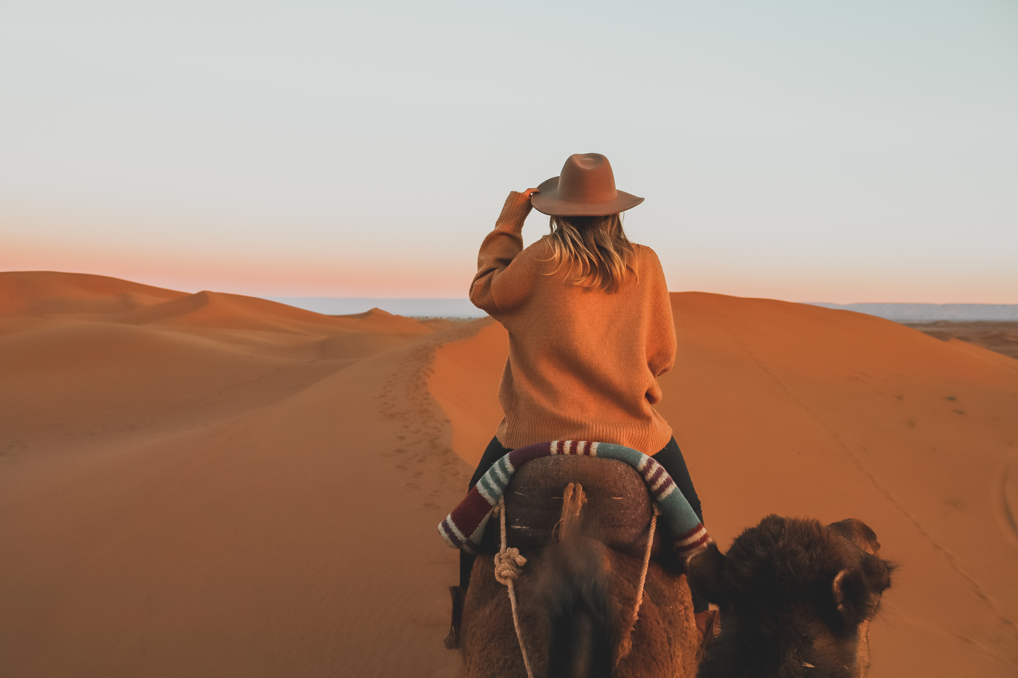 Svegliatevi all’ultimo tramonto nel deserto e godetevi una colazione tradizionale tra le dune. Inizieremo quindi il nostro tranquillo viaggio di ritorno a Merzouga a dorso di cammello, arrivando con ricordi indimenticabili e una nuova prospettiva sulla vita marocchina.