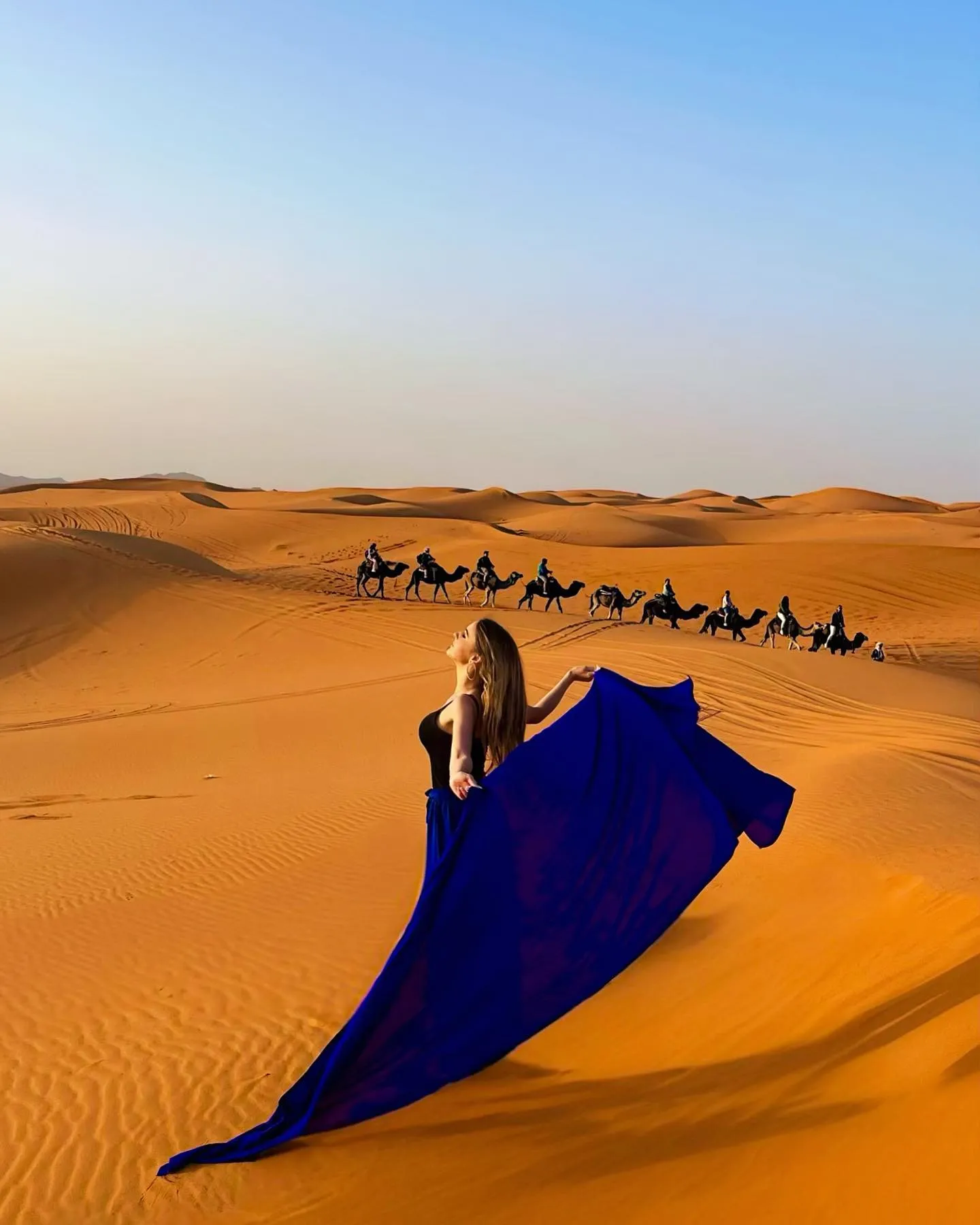 Por la mañana, partiremos desde Ouarzazate hacia Tinghir vía Skoura, Valle de Roses, Valle del Dades, haremos una parada para el almuerzo en las gargantasde Todra incluyendo un paseo por las gargantas. Por la tarde nos dirigiremos a las dunas de Merzouga admirar un hermoso puesta de sol encima de Erg Chebbi antes de continuar en camellos al campamento para la cena y noche incluido